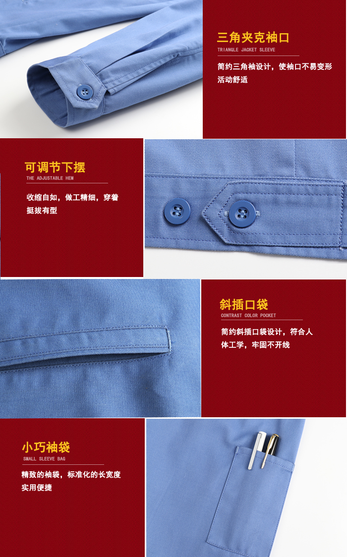 3、細(xì)節(jié) 工作服根據(jù)企業(yè)要求和工作崗位不同是不盡相同,比如機(jī)械工人的工作服要求是緊身的,下擺、袖口、褲腿都是可以扣起來的。化工行業(yè)的化驗人員穿著的工作服應(yīng)是較為厚實(shí)的緊袖。外賣、快遞員的工作服需要多口袋設(shè)計,便于攜帶物品。穿合適的工作服,更加有利于便捷工作。
