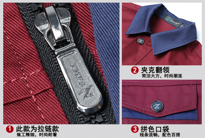 2、面料 定制時,選擇適合的面料,才能達(dá)到最佳實(shí)用性。不同的工作領(lǐng)域,應(yīng)考慮其工作服的功能。如建筑行業(yè),應(yīng)該選用耐磨性面料;電子行業(yè),應(yīng)該選用防靜電面料。穿梭于大街小巷的外賣、快遞員,冬天需要的是防風(fēng)防水保暖面料。交通運(yùn)輸行業(yè)以及夜間工作者需要反光條面料設(shè)計。在選擇面料時還要考慮面料的固色性、耐用性、縮水性、酸堿性等方面。 工作服一般選擇棉質(zhì)面料,特別是棉和其他纖維混紡的面料,穿著起來舒適親膚,有著很好的吸濕透氣性、排汗性,健康環(huán)保,工作服穿著是否合理,會直接關(guān)系到人體健康。