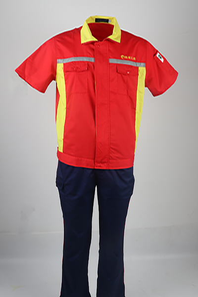 秋季和夏季工作服的主要區(qū)別在面料和上衣袖子區(qū)別上,夏季工作服采用的是上衣短袖下身長袖套裝,這次的設(shè)計(jì)考慮到工作環(huán)境因素所有有反光條設(shè)計(jì)和防靜電設(shè)計(jì),天曼小編要再次提醒大家,防靜電設(shè)計(jì)一定要認(rèn)準(zhǔn)LA標(biāo)志哦,在顏色的選擇上上衣為紅黃色搭配,下身是深藍(lán)色,整個套裝看起來熱情奔放,我已經(jīng)能腦補(bǔ)到路航石油員工穿著認(rèn)真工作的樣子了。