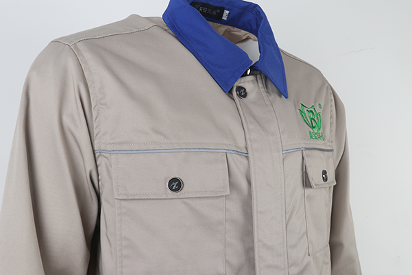 這次的工作裝,采用了百分之六十五的滌綸加百分之三十五的棉,考慮到工作環(huán)境這樣的布料耐磨,吸水性好,干得快,同時(shí)性價(jià)比也是非常高,顏色采用簡潔的淺咖色,領(lǐng)口處采用深藍(lán)色,款式上還是傳統(tǒng)的工裝款式,不同的是整體的顏色搭配和款式上看起來是非常休閑時(shí)尚的,另外在胸口處也是印制了刺繡logo,不容易掉色,這次樣衣展示給了企業(yè),同時(shí)也是獲得了肯定。