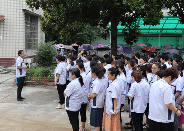 當天下午1500,保安員發出火警報警信號。各演練工作組在聽到指令后,迅速到位,在最短的時間內,于車間內、樓梯間及安全出口處,通過口令加手勢,指揮員工從指定路線進行有秩序地疏散;把現場所有人員,快捷有序地疏散到安全地帶
